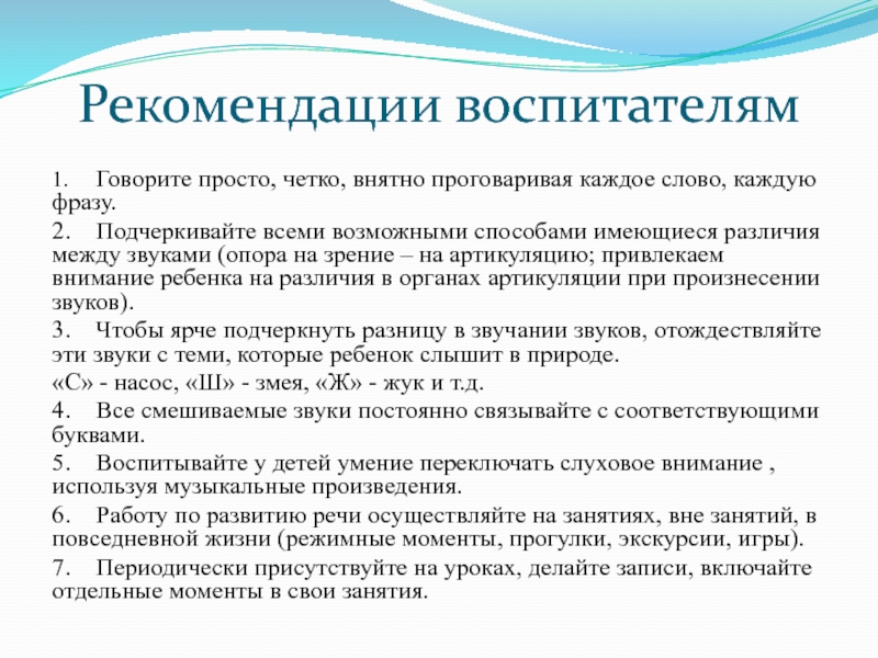 Слайд 25Рекомендации воспитателям