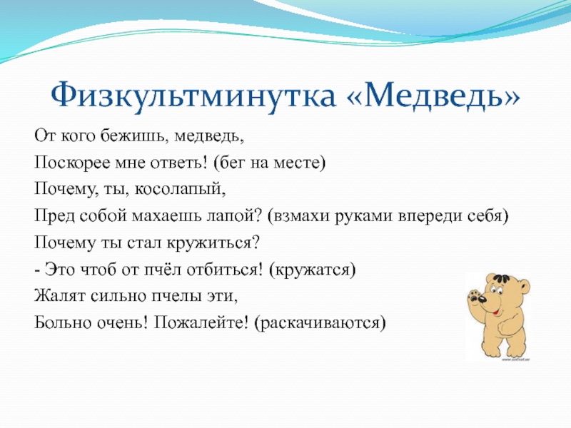 Слайд 18Физкультминутка «Медведь»
