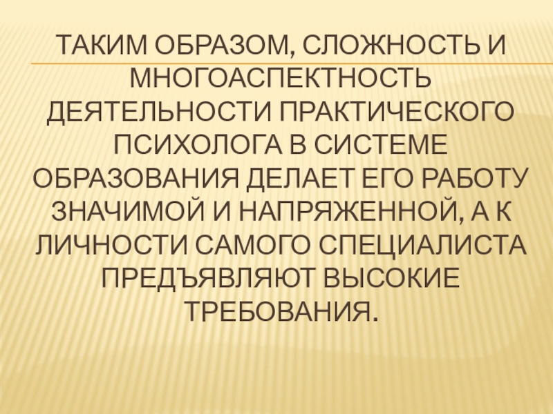 Слайд 9Таким образом, сложность и многоаспектность деятельности практического психолога в системе образования