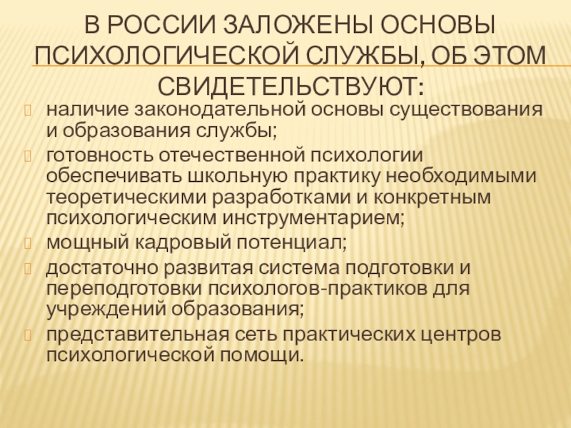 Слайд 2в России заложены основы психологической службы, Об этом свидетельствуют: