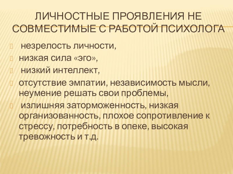 отсутствие эмпатии, независимость мысли, неумение решать свои проблемы,