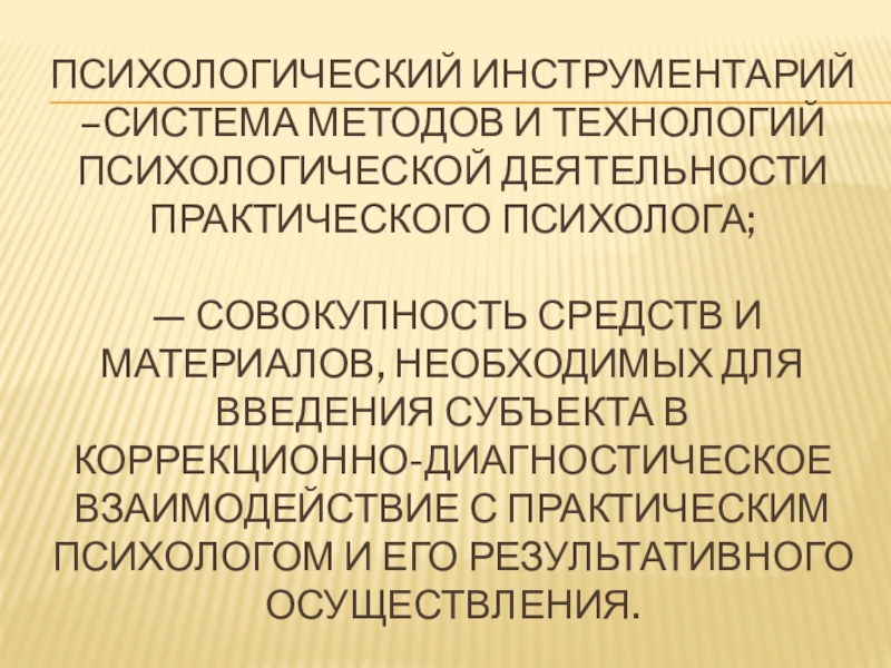 Слайд 15Психологический инструментарий –система методов и технологий психологической деятельности практического психолога;