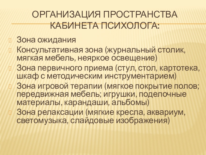 Зона первичного приема (стул, стол, картотека, шкаф с методическим инструментарием)