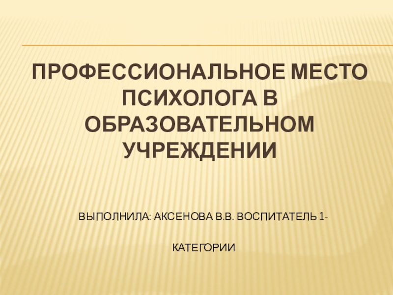 Слайд 1Профессиональное место психолога в образовательном учреждении