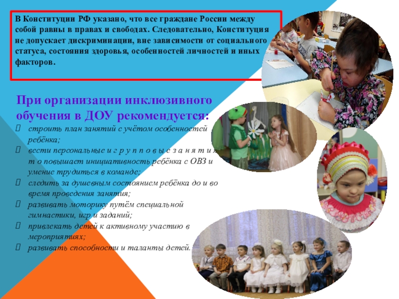 При организации инклюзивного обучения в ДОУ рекомендуется:
