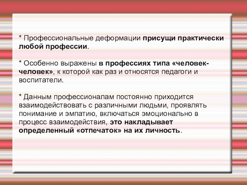 Слайд 6* Профессиональные деформации присущи практически любой профессии.