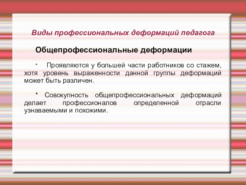 * Совокупность общепрофессиональных деформаций делает профессионалов определенной отрасли узнаваемыми и похожими.