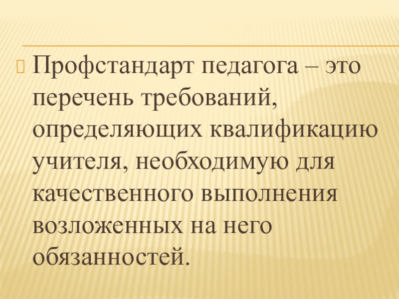 Слайд 2Профстандарт педагога – это перечень требований, определяющих квалификацию учителя, необходимую для