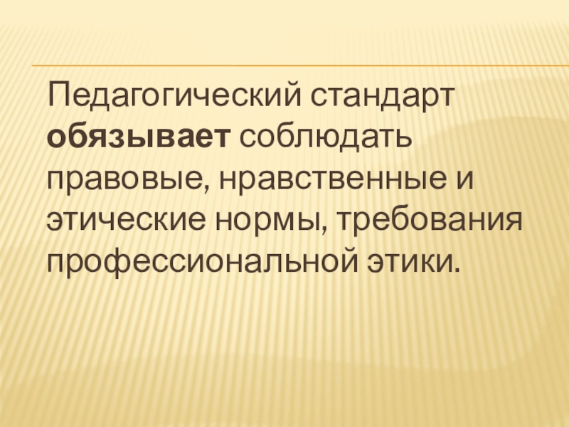 Слайд 11 Педагогический стандарт обязывает соблюдать правовые, нравственные и этические нормы,