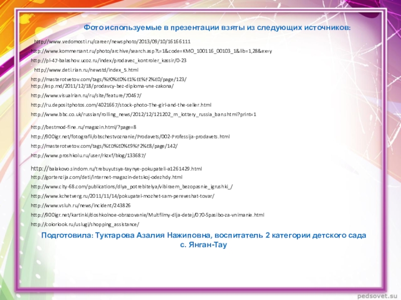 Фото используемые в презентации взяты из следующих источников: