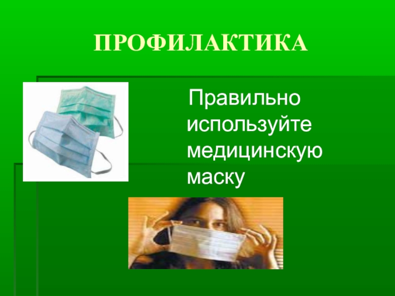ПРОФИЛАКТИКА  Правильно  используйте медицинскую маску