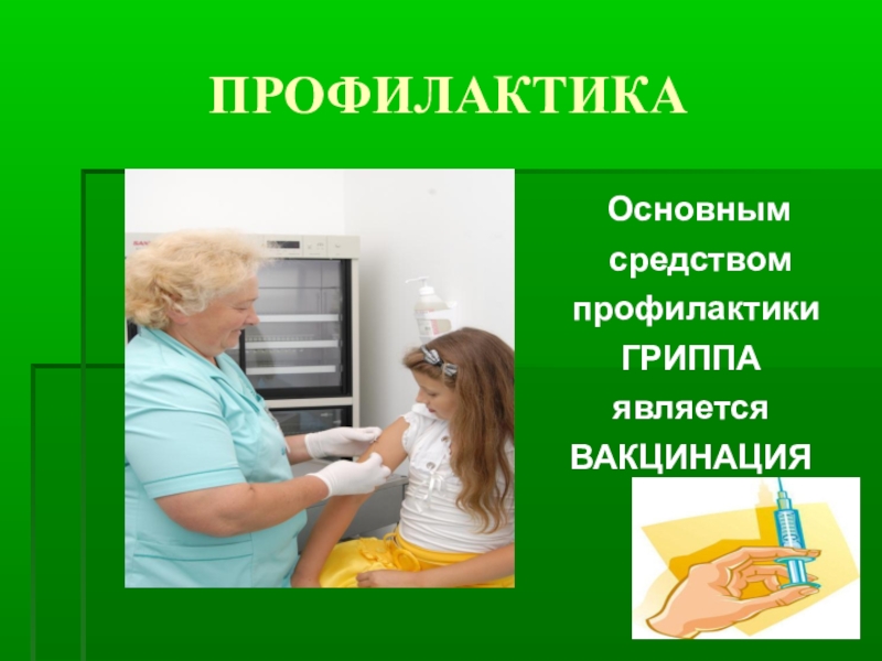 ПРОФИЛАКТИКА Основным  средством  профилактики ГРИППАявляется ВАКЦИНАЦИЯ