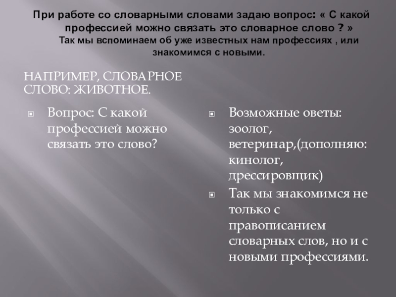 Так мы знакомимся не только с правописанием словарных слов, но и с новыми профессиями.