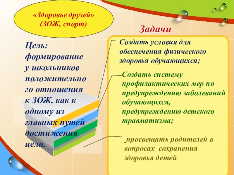 Цель: формирование у школьников положительного отношения к ЗОЖ, как к одному из главных путей достижения цели.