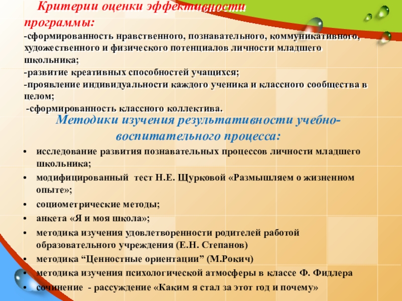 модифицированный тест Н.Е. Щурковой «Размышляем о жизненном опыте»;