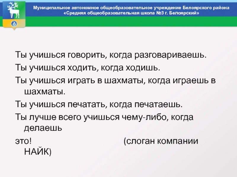 Муниципальное автономное общеобразовательное учреждение Белоярского района «Средняя общеобразовательная школа №3 г. Белоярский»