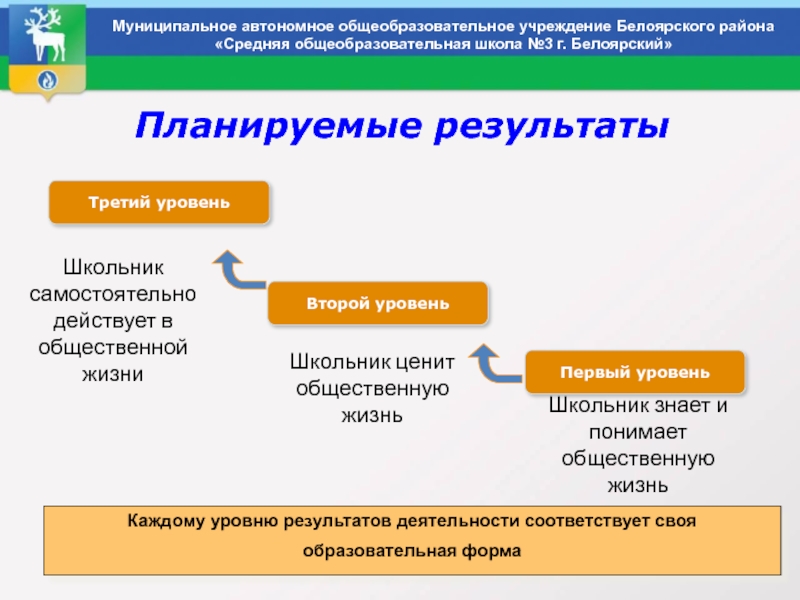 Каждому уровню результатов деятельности соответствует своя образовательная форма