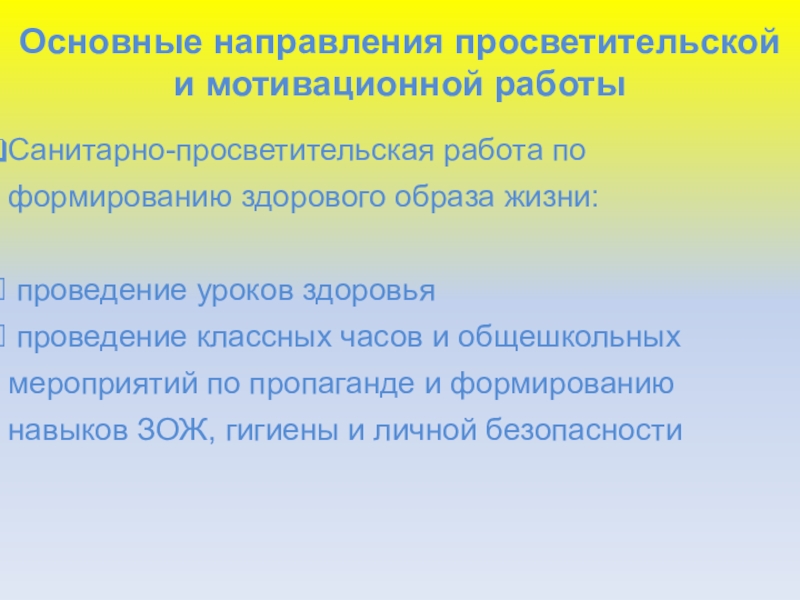 проведение классных часов и общешкольных мероприятий по пропаганде и формированию навыков ЗОЖ, гигиены и личной безопасности