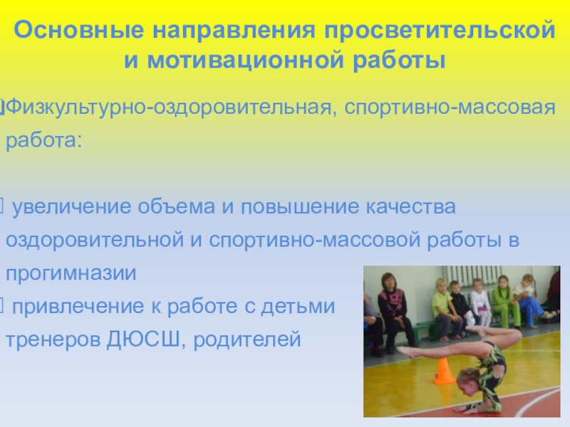 повышение качества оздоровительной и спортивно-массовой работы в прогимназии