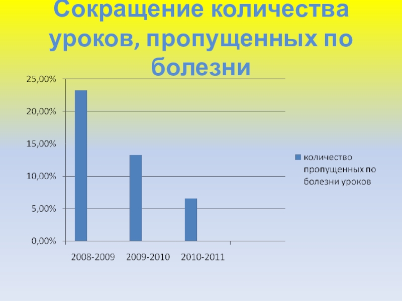 Слайд 40Сокращение количества уроков, пропущенных по болезни