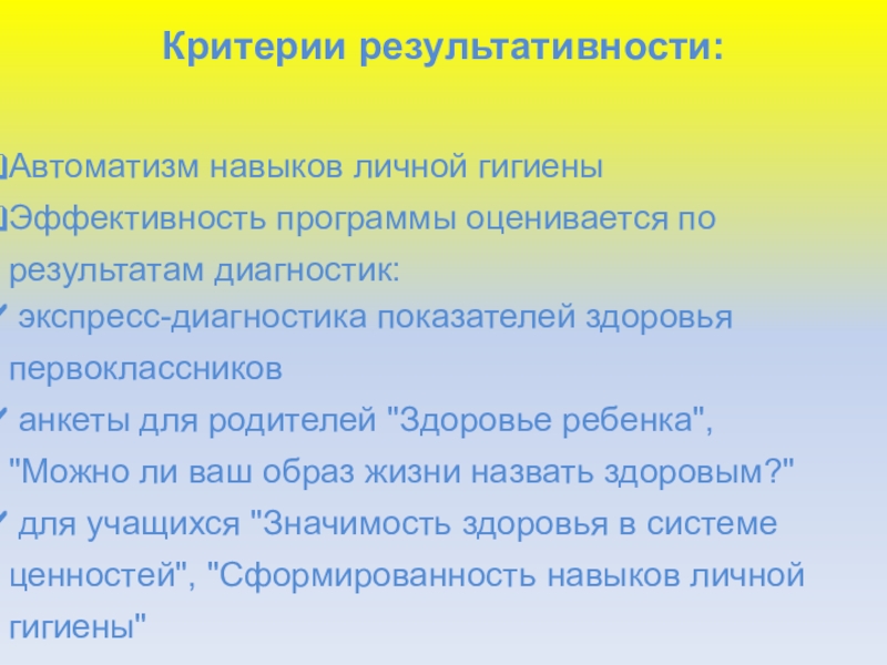 для учащихся "Значимость здоровья в системе ценностей", "Сформированность навыков личной гигиены"