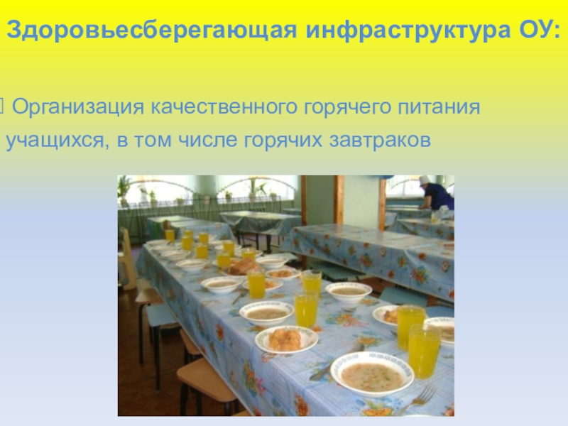 Слайд 10Здоровьесберегающая инфраструктура ОУ: