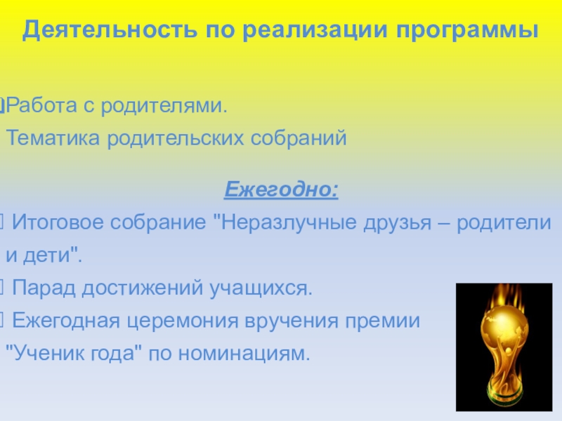 Ответственность и контроль за реализацию этого блока возлагается на администрацию ОУ