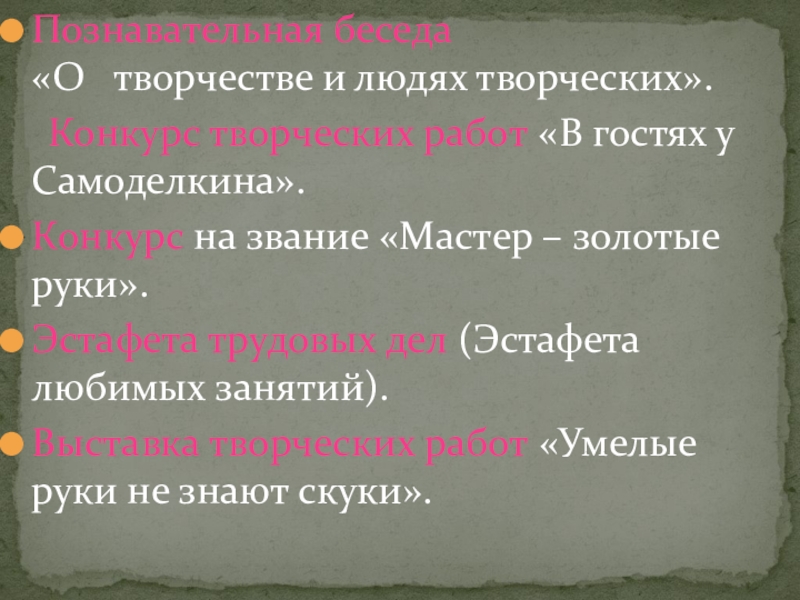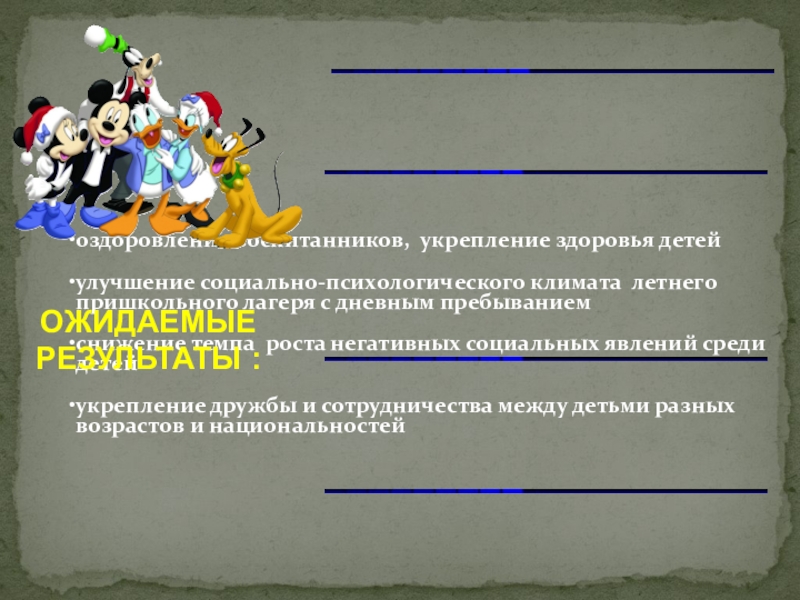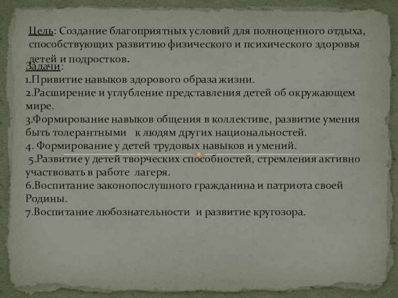5.Развитие у детей творческих способностей, стремления активно участвовать в работе лагеря.