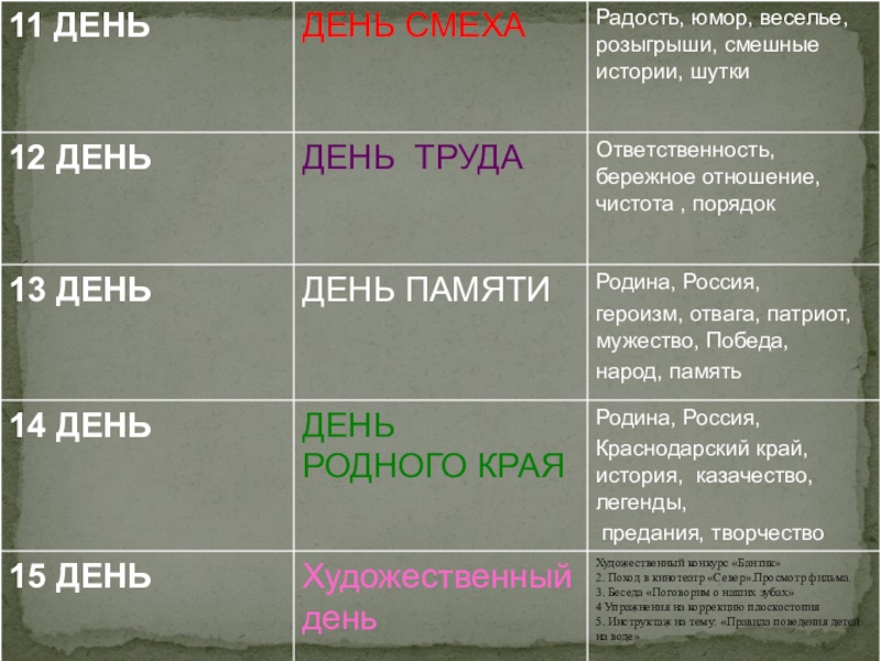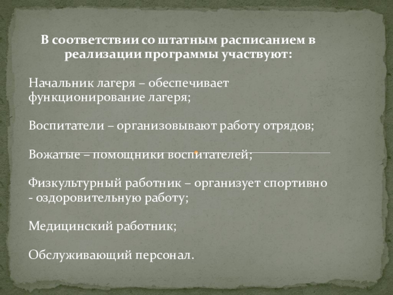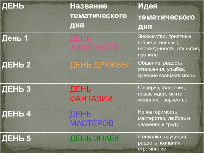 Программа лагеря, профильной смены