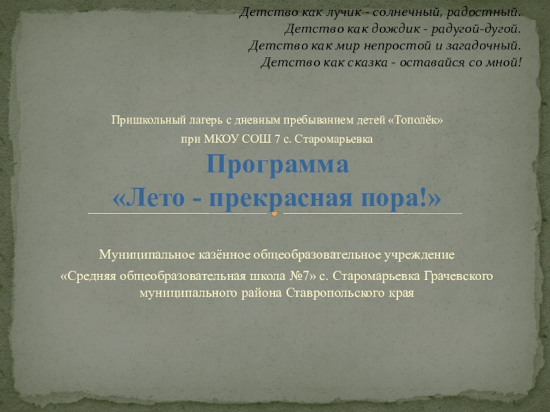 Детство как лучик - солнечный, радостный.