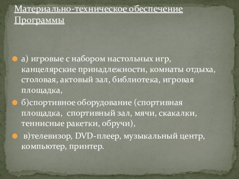 Материально-техническое обеспечение Программы