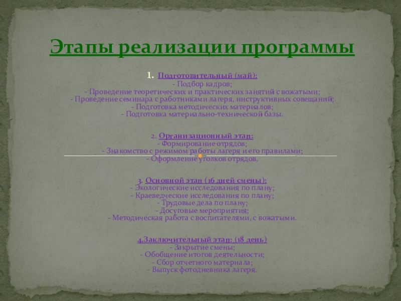 Этапы реализации программы