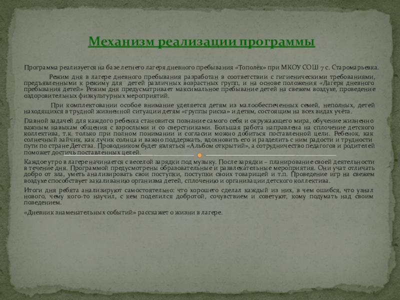 Механизм реализации программы