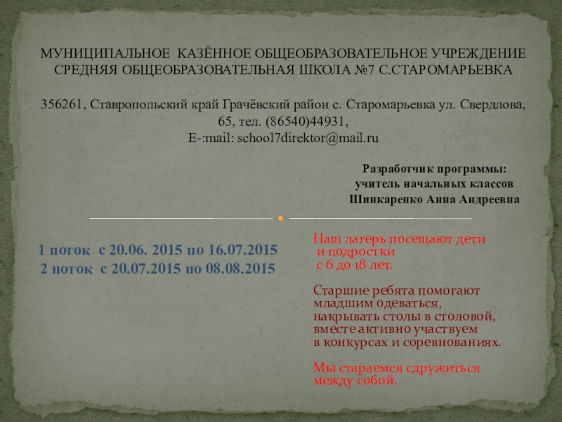 с. Старомарьевка МКОУ СОШ 7