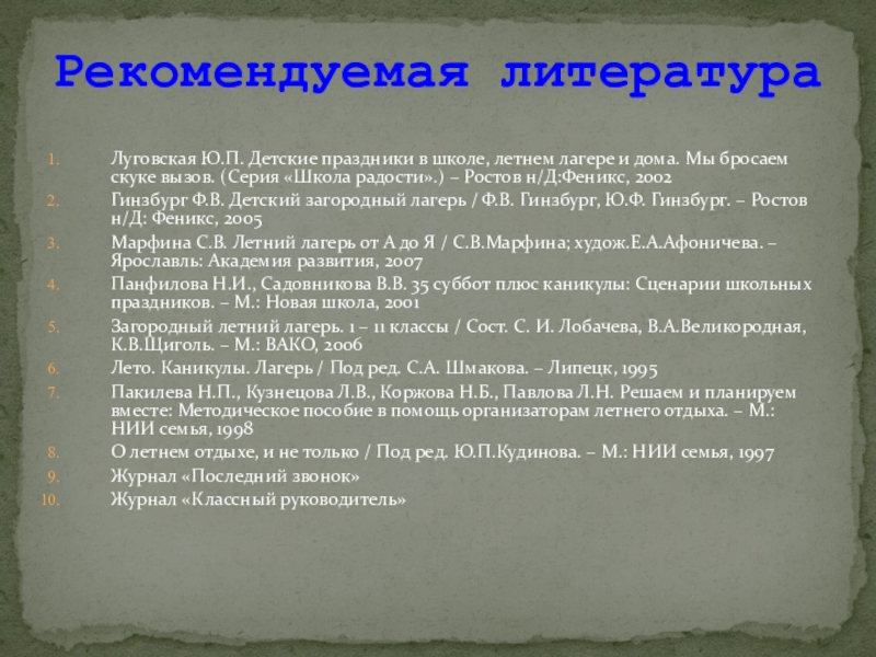 Рекомендуемая литература