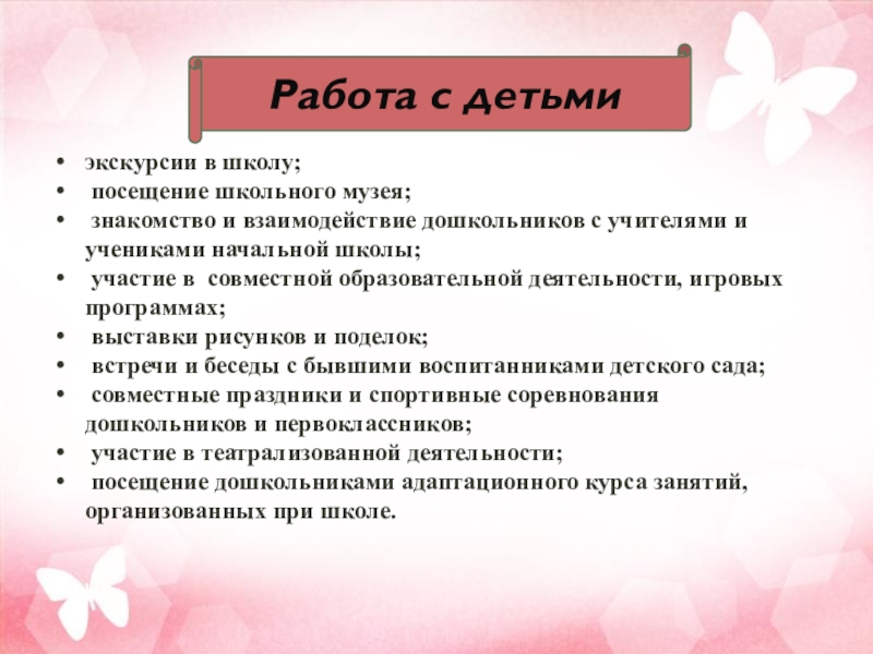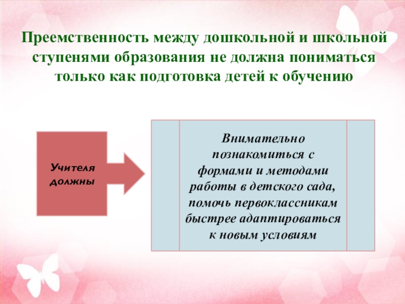 Внимательно познакомиться с формами и методами работы в детского сада, помочь первоклассникам быстрее адаптироваться к новым условиям