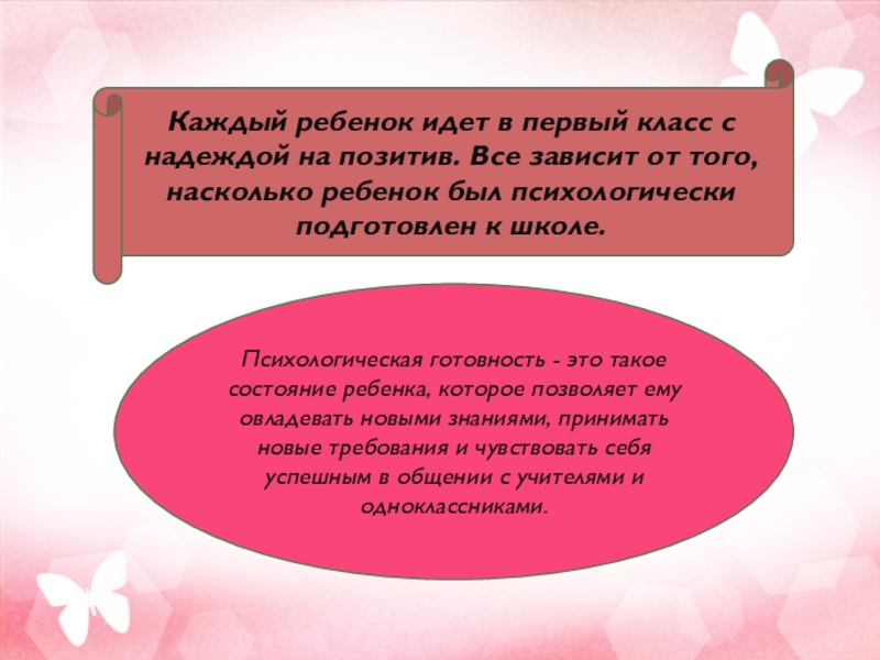 Психологическая готовность - это такое состояние ребенка, которое позволяет ему овладевать новыми знаниями, принимать новые требования и чувствовать себя успешным в общении с учителями и одноклассниками.