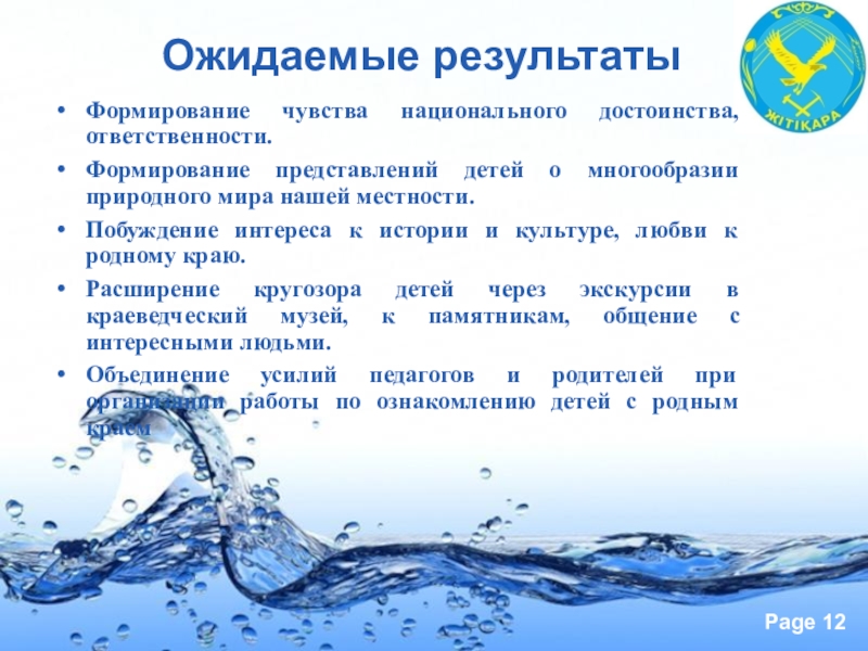 формирует у воспитанников ценностное отношение к родной природе, как части Малой Родины. Помогает воспитывать интерес к общественным событиям нашего края, нашей страны, уважения к труду. Знакомит с историческими данными малой Родины, её значимостью в политической жизни Казахстана.