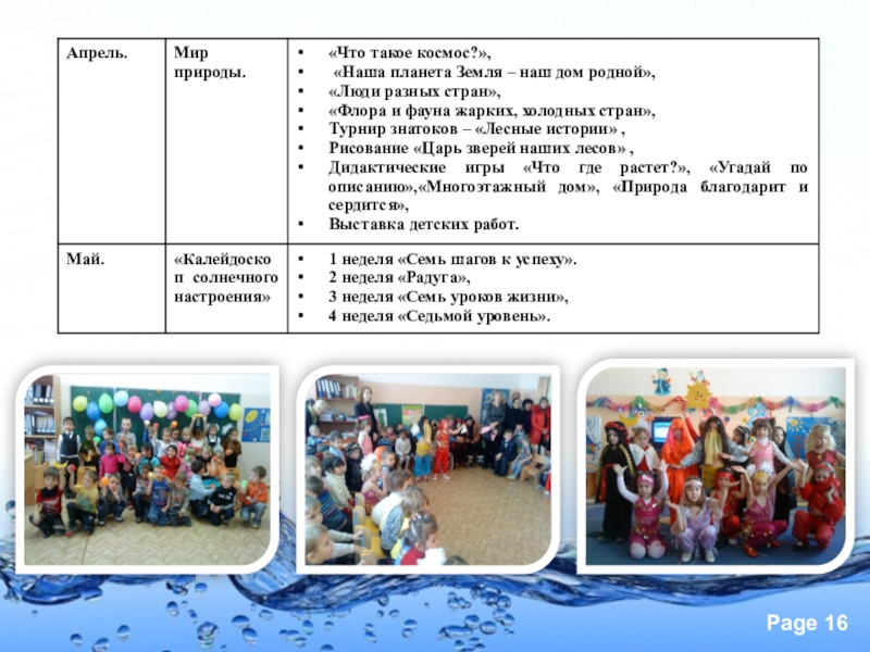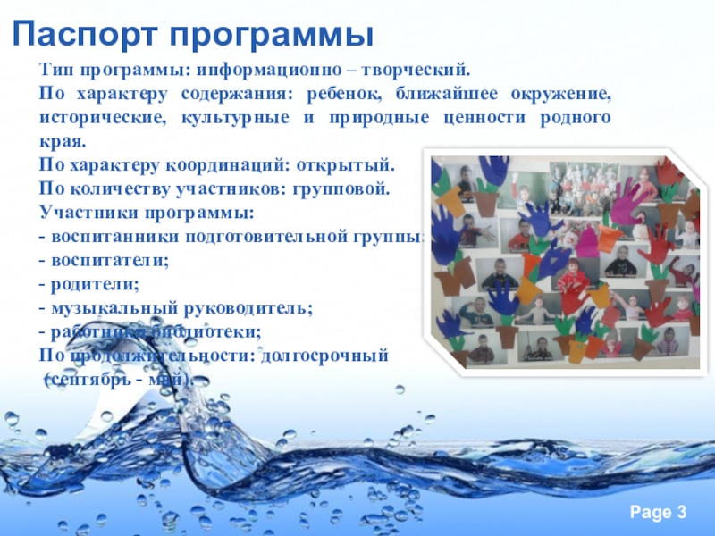Данная программа для детей подготовительной группы. Он способствует развитию патриотического воспитания,