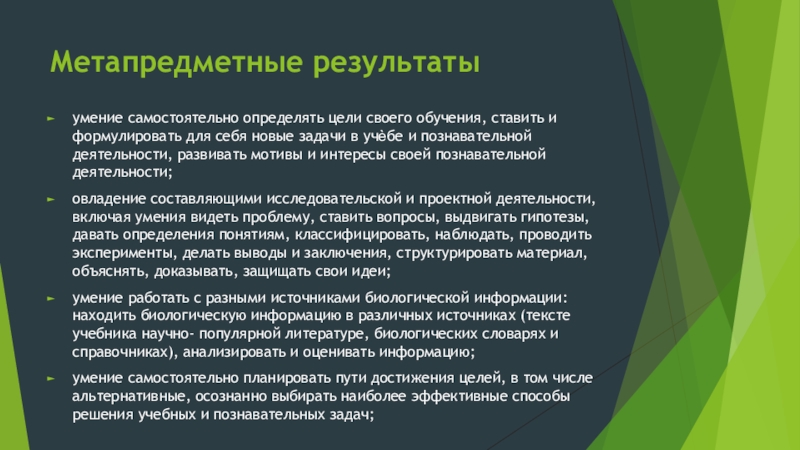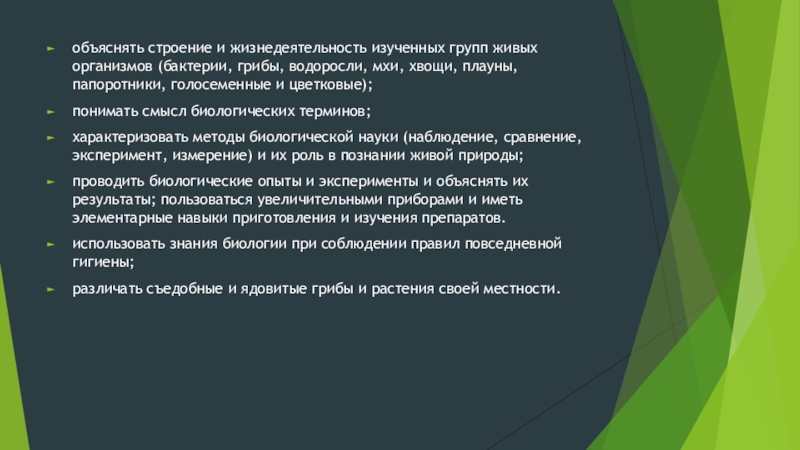 овладение методами биологической науки; наблюдение и описание биологических объектов и процессов; постановка биологических экспериментов и объяснение их результатов;