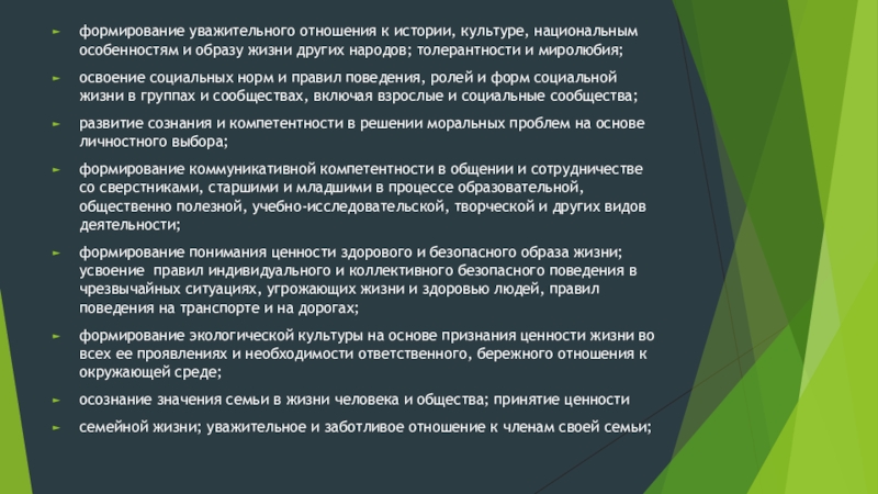 Слайд 11формирование уважительного отношения к истории, культуре, национальным особенностям и образу жизни