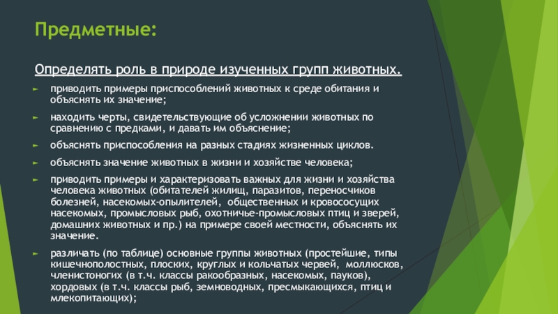 объяснение роли биологии в практической деятельности людей, места и роли растений и животных; родства общности происхождения и эволюции растений и животных;