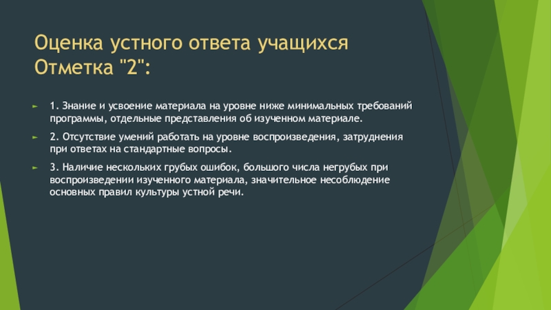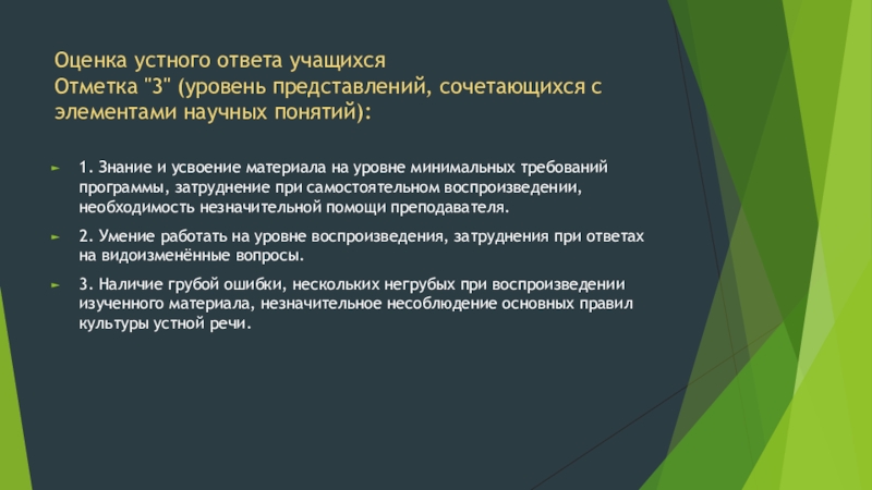 3. Незначительные (негрубые) ошибки и недочёты при воспроизведении изученного материала, соблюдение основных правил культуры устной речи.