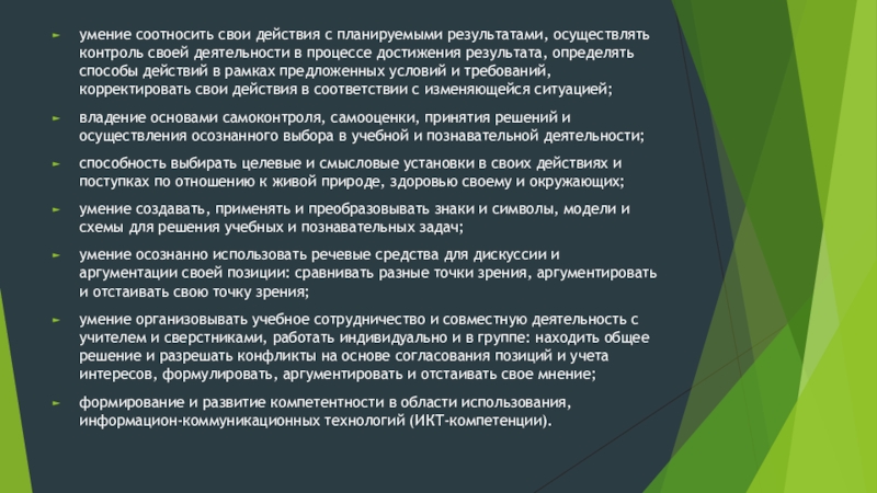 Слайд 13умение соотносить свои действия с планируемыми результатами, осуществлять контроль своей деятельности