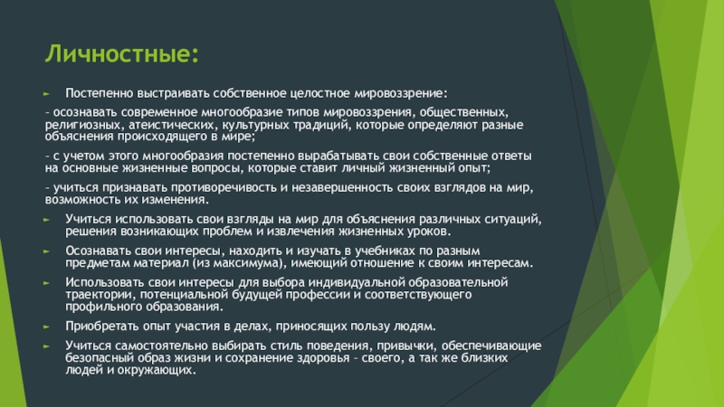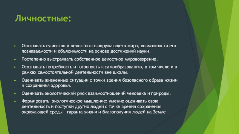 формирование личностных представлений о ценности природы, осознание значимости и общности глобальных проблем человечества;