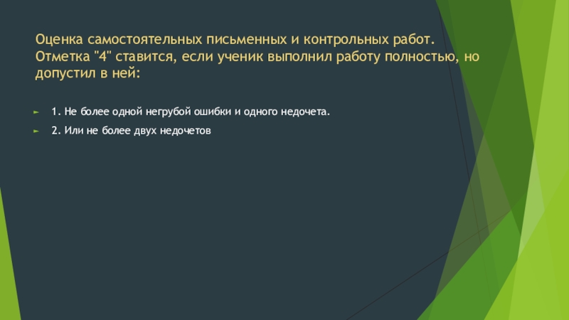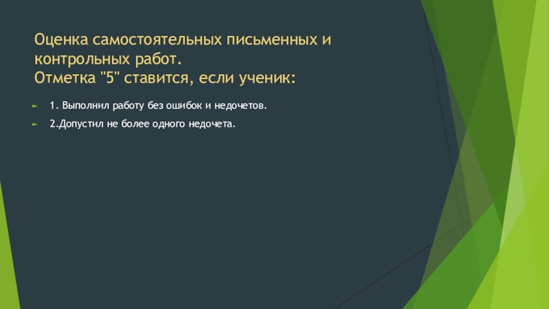 Слайд 63Оценка самостоятельных письменных и контрольных работ.