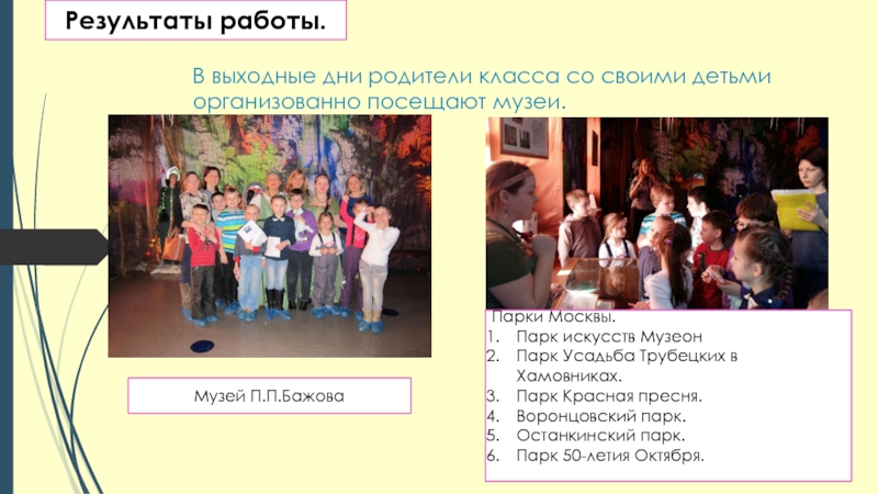 Слайд 17В выходные дни родители класса со своими детьми организованно посещают музеи.