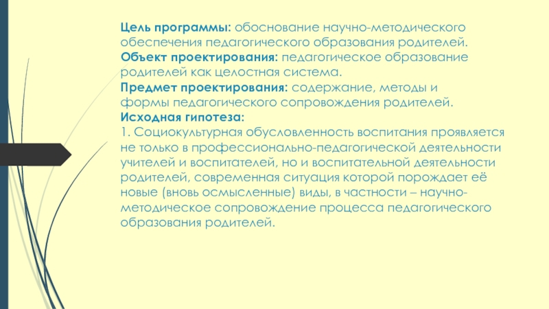 Слайд 8Цель программы: обоснование научно-методического обеспечения педагогического образования родителей.