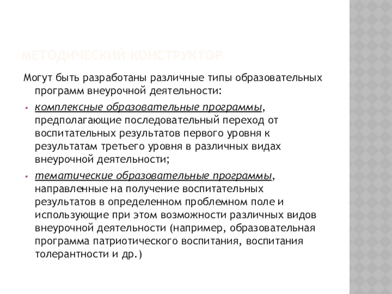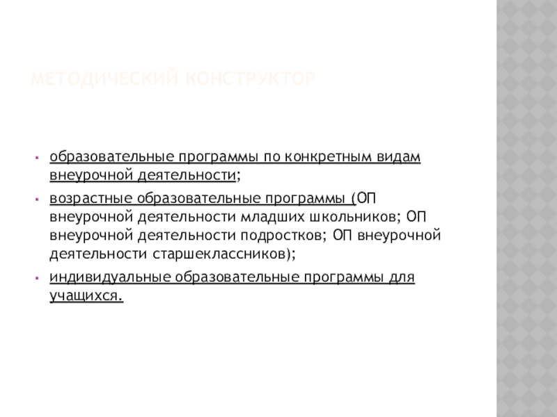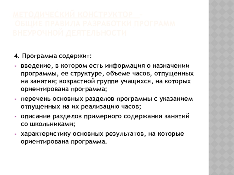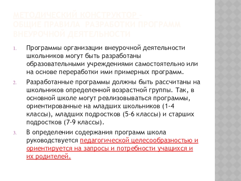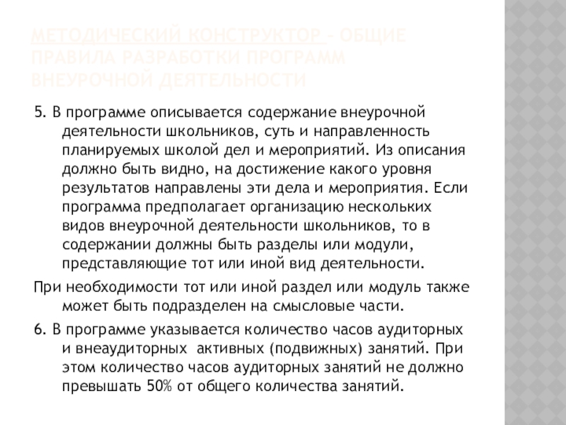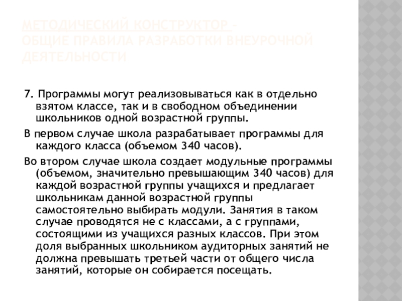 Слайд 7МЕТОДИЧЕСКИЙ КОНСТРУКТОР – ОБЩИЕ ПРАВИЛА РАЗРАБОТКИ ПРОГРАММ ВНЕУРОЧНОЙ ДЕЯТЕЛЬНОСТИ