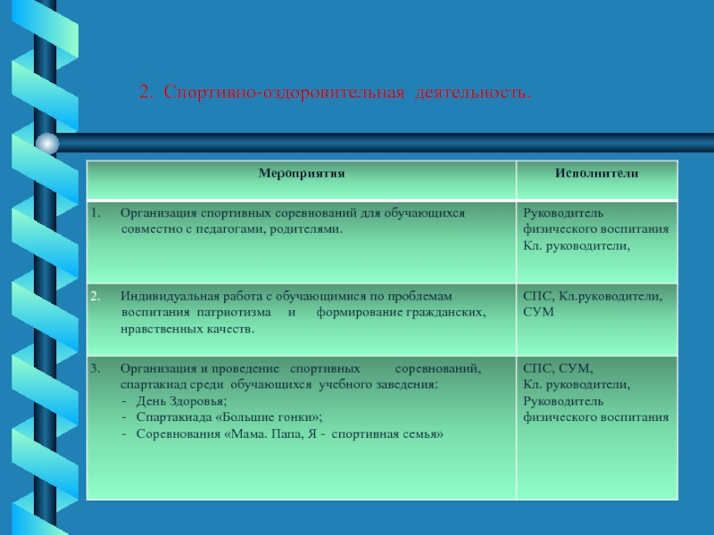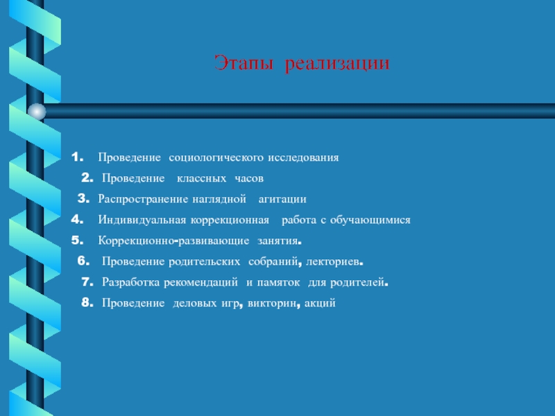Программа предполагает сотрудничество медицинских, правоохранительных и других представителей общественных организаций, связанных работой с подростками, а также вовлечение подростков в активную творческую деятельность направленную на формирование сберегающего отношения к здоровью.